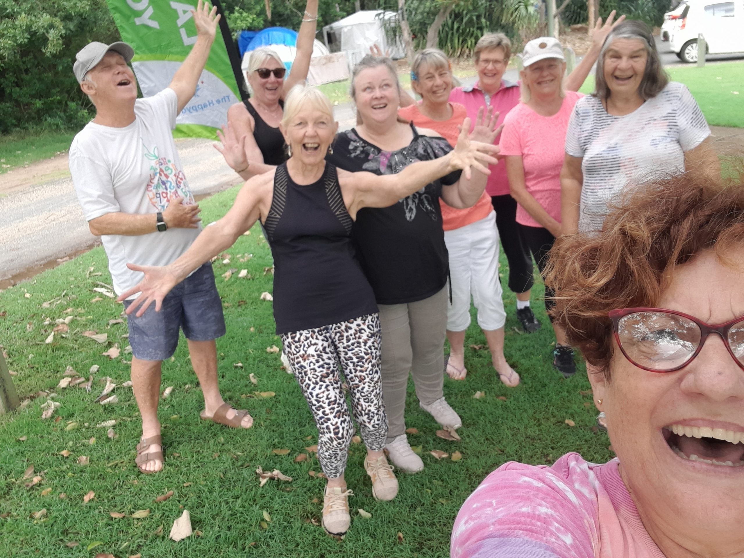 You don’t need to book into your Laughter Yoga class with HeatherJoy and The Happydemic. You can just turn up. By following The Happydemic’s Facebook page, you’ll see updates such as cancellations caused by rain (or sickness in these COVID times).